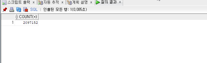 각 방식을 소개하며 직접 실습해보기 위해서 '재귀 복사'를 통해 약 200만 개의 행을 생성하였습니다.