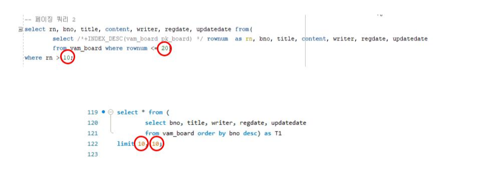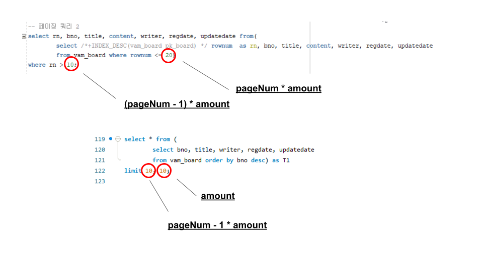 저번 포스팅의 쿼리를 동적으로 동작하도록 하기 위해선 rownum 조건값과 limit 조건값이 각 상황에 맞게 변경되어야 합니다.