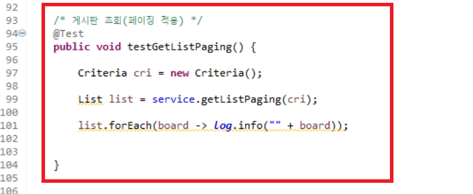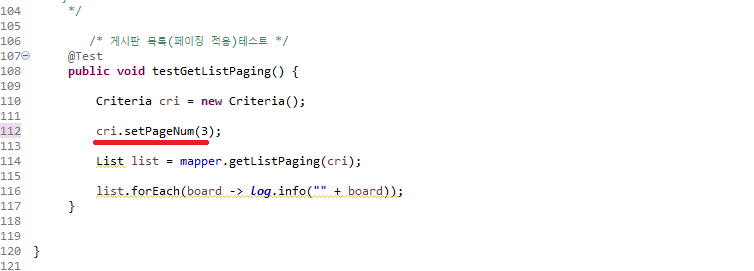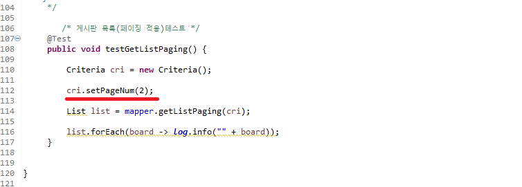 - pageNum, amount의 정보를 DB에 전달하기 위해서 Criteria 클래스를 파라미터로 부여합니다.