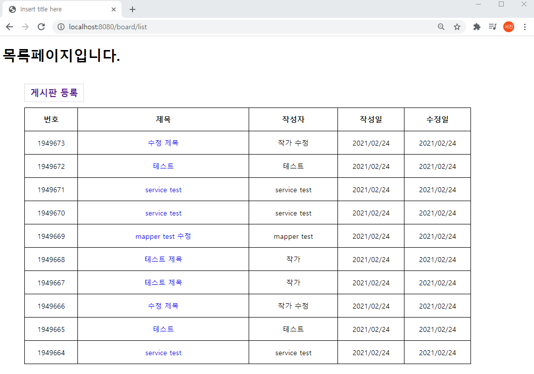 "/board/list" 페이지가 정상적으로 출력되는지 테스트합니다.