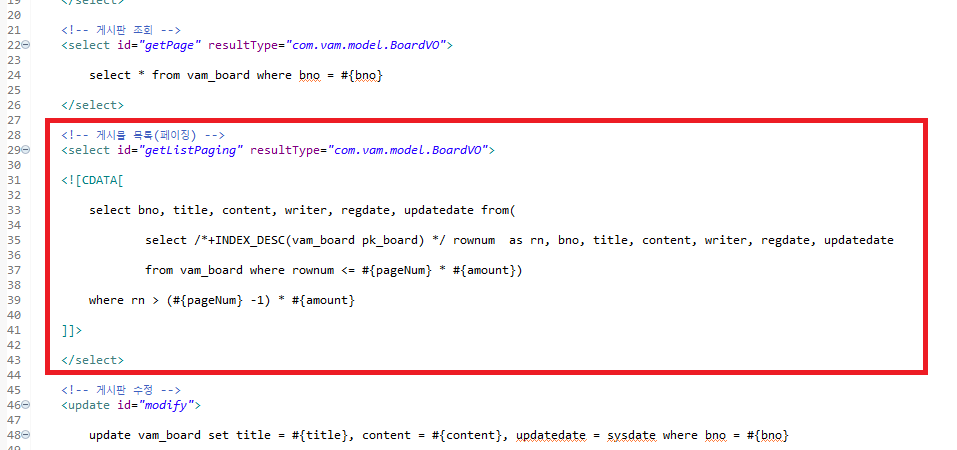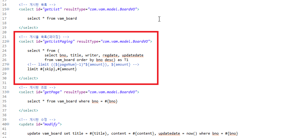 <select id="getListPaging" resultType="com.vam.model.BoardVO">