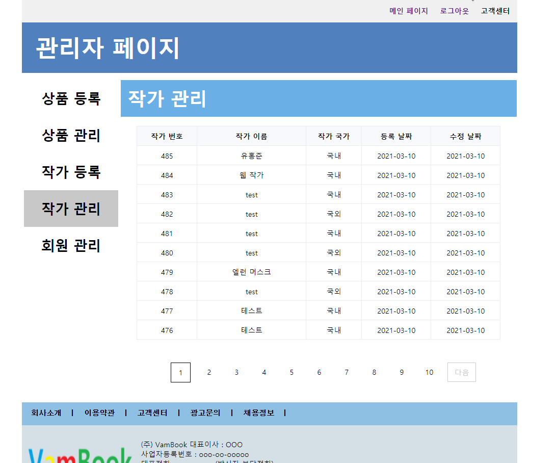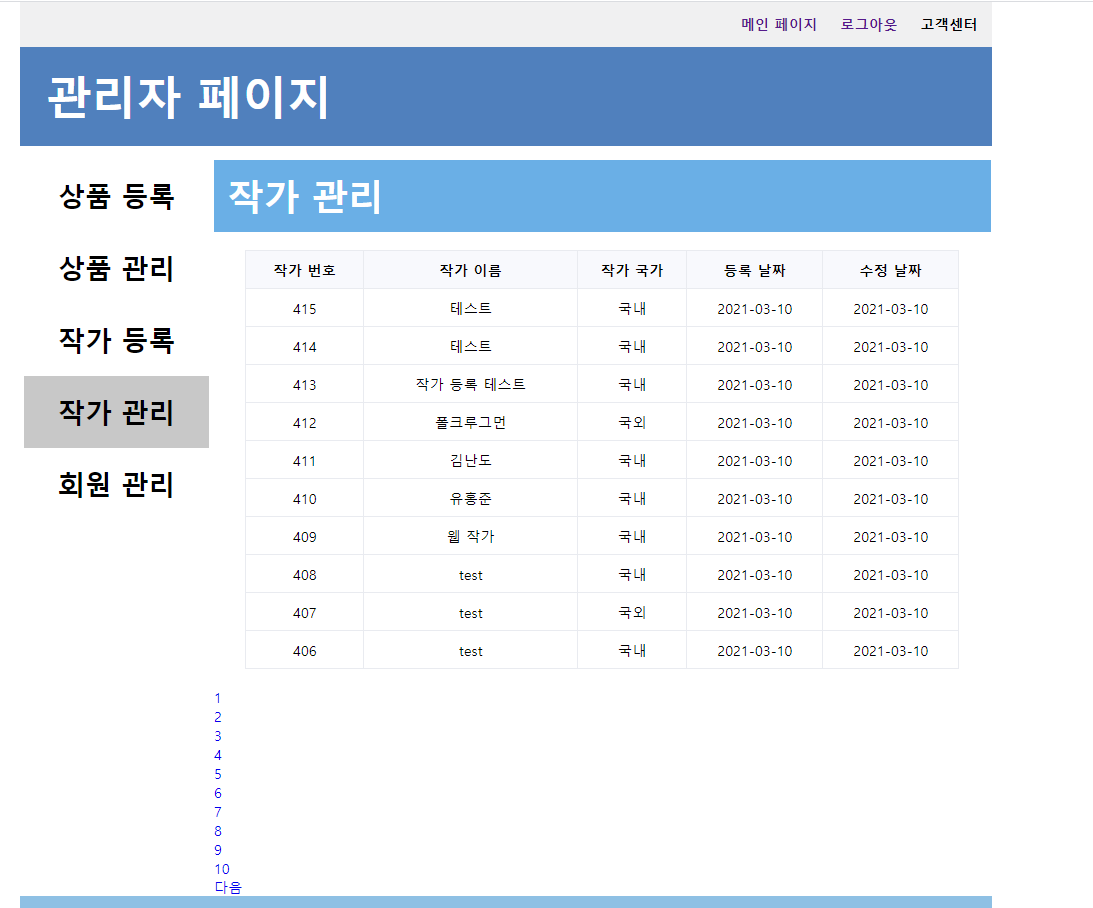 [Spring][쇼핑몰 프로젝트][15] 작가목록 기능 구현 - 3 본문