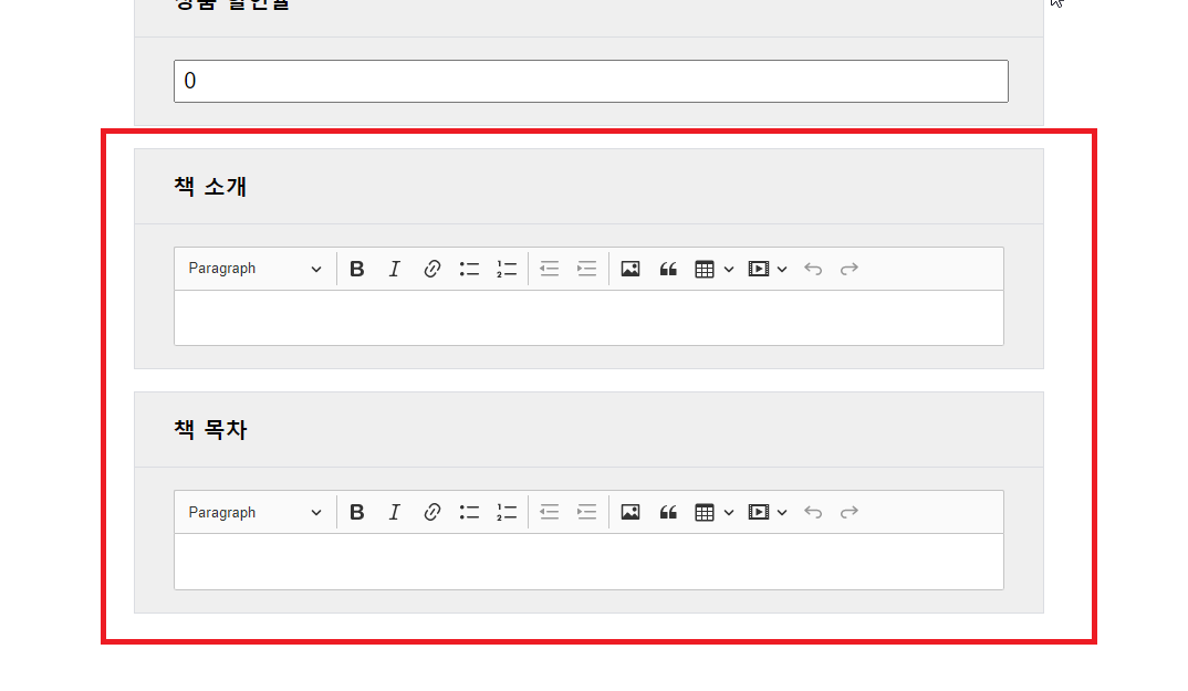 '책 소개', '책 목차' 입력란 위지윅 에디터 적용