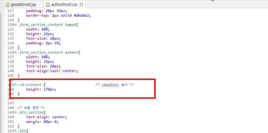 입력란 높이가 낮아서 이를 높여주기 위해 goddsEnroll.css 파일에 아래의 css 설정을 추가해주었습니다.